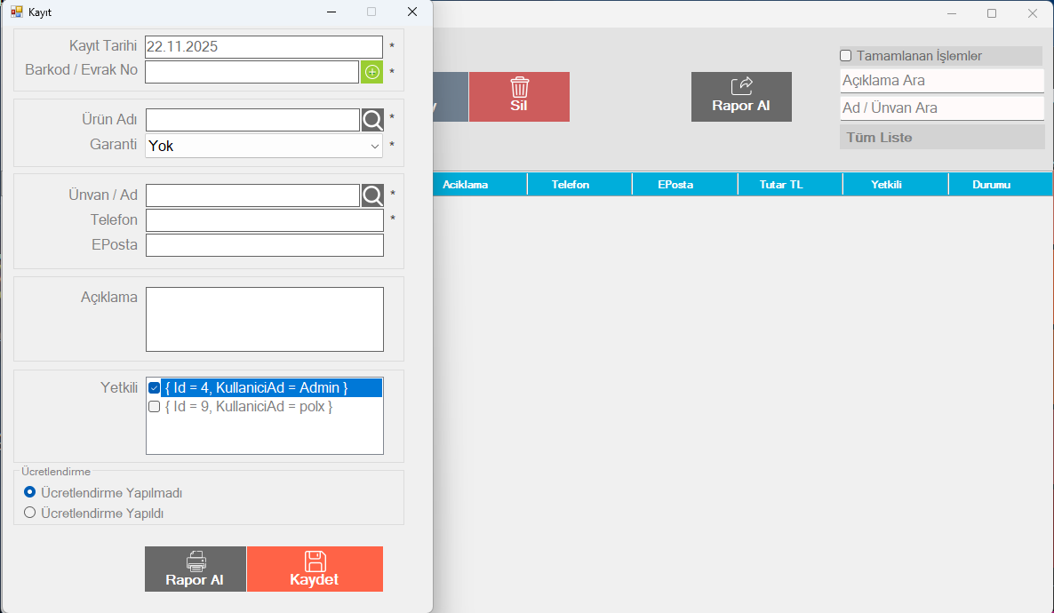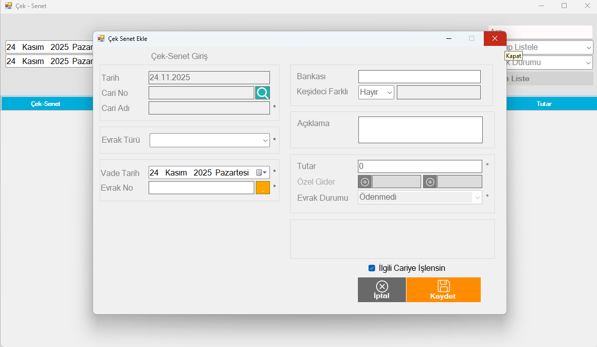 Çek senet, giriş çıkış takibi ekleme silme düzenleme