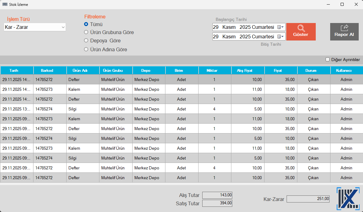 Stok giriş çıkış izleme kar-zarar hesabı ve alış satış istatistikleri